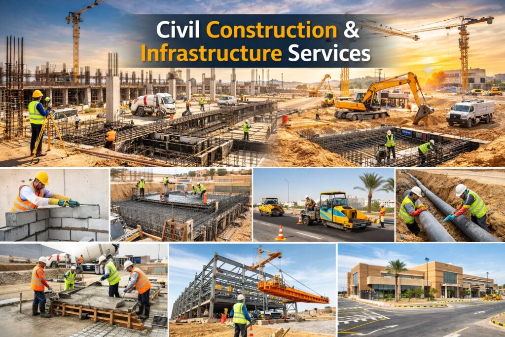 Waterproofing Civil modifications Facility upgrades We follow Saudi standards, safety regulations, and quality control procedures to ensure durable and reliable construction solutions